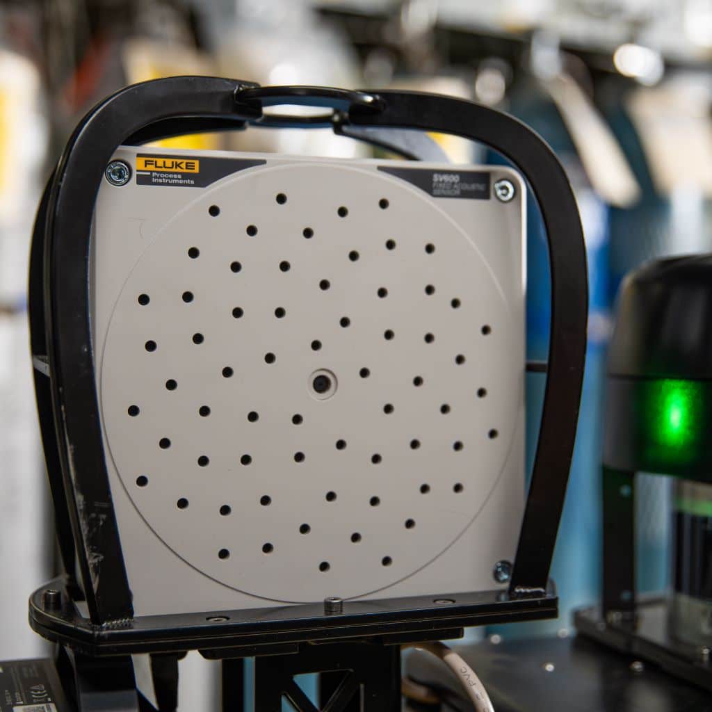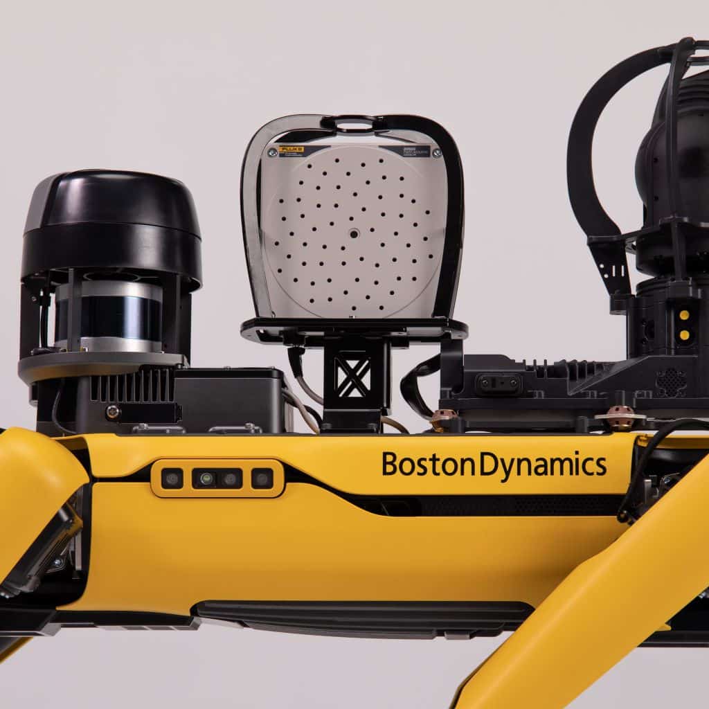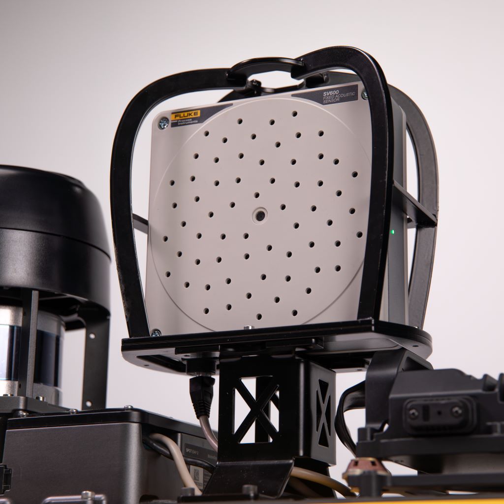 The Fluke SV600 acoustic imaging payload enables Spot to identify leaks and detect early indicators of bearing failures.